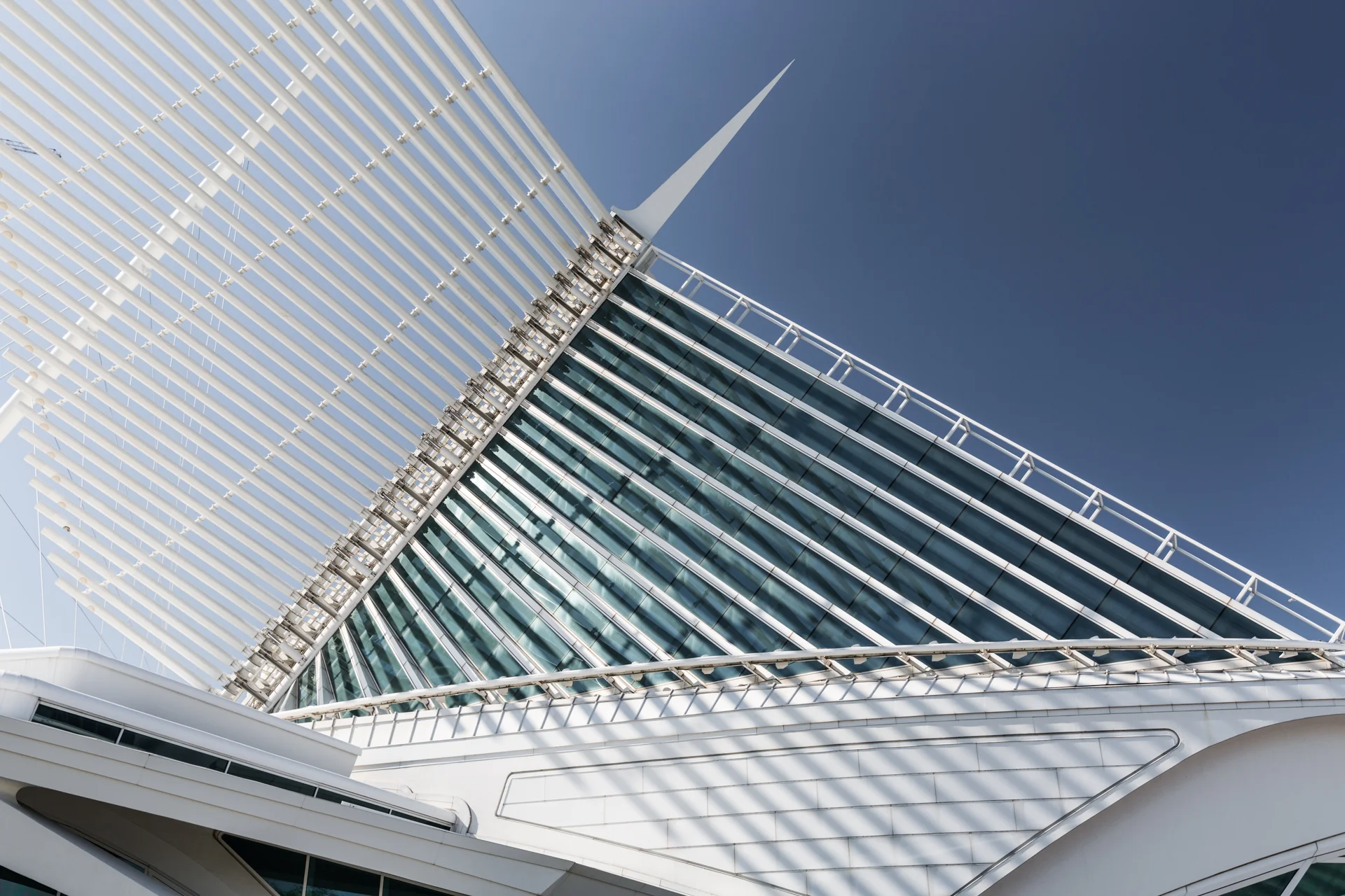 I have always wanted to visit and shoot this stunning Santiago Calatrava designed lakeside building in Milwaukee, Wisconsin. The 'Burke Brise Soleil' is the main feature; a massive moveable wing like structure which acts as a sunshade and automatic wind defense. Winds aside, the huge bird folds it's wings down twice a day. It is such a beautiful thing to witness in person.